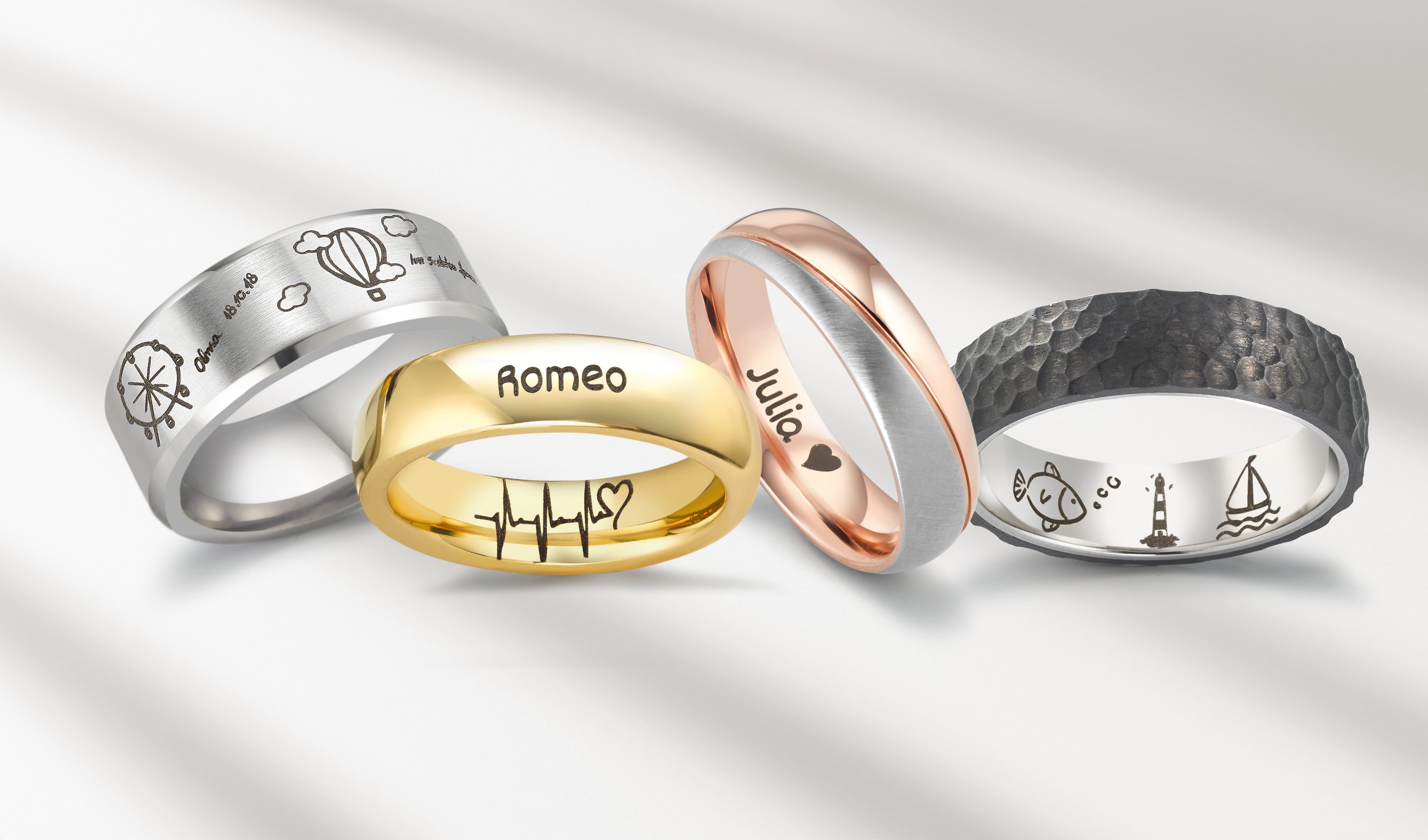 Dank Lasertechnik sind euren Wünschen keine Grenze gesetzt und so es ist auch möglich, beispielsweise euren Fingerabdruck detailgetreu nachzubilden und auf den Ringen zu verewigen.