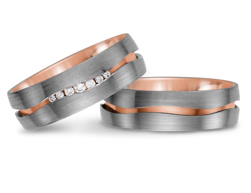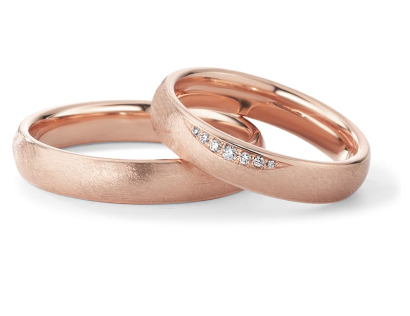 Gold ist nicht einfach Gold. Der warme Farbton des roséfarbenen Edelmetalls ist wegen seiner unaufdringlichen Eleganz sowohl bei Frauen als auch bei Männern sehr beliebt. Eheringe aus Rosé- und Rotgold sind das perfekte Symbol der Zusammengehörigkeit für Paare, die eine subtile und elegante Ästhetik schätzen und ihre Liebe stilvoll ausdrücken möchten.