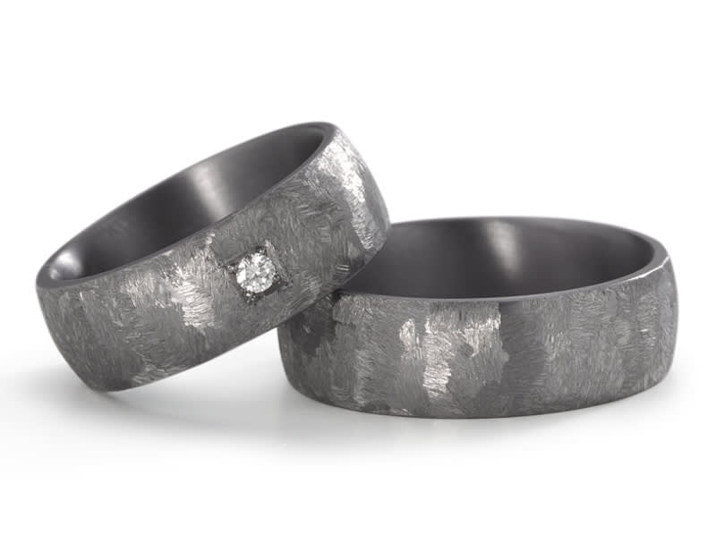 Tantal, ein Metall von dunkler und schwerer Beschaffenheit, besticht durch seine edel schimmernde, grafitgraue Farbe. Diese Besonderheit macht Tantal zu einer perfekten Wahl für Eheringe, insbesondere für Paare, die das Aussergewöhnliche suchen. Die geheimnisvolle Aura intensiviert die Brillanz von Diamanten, Gold und Platin auf elegante Weise.