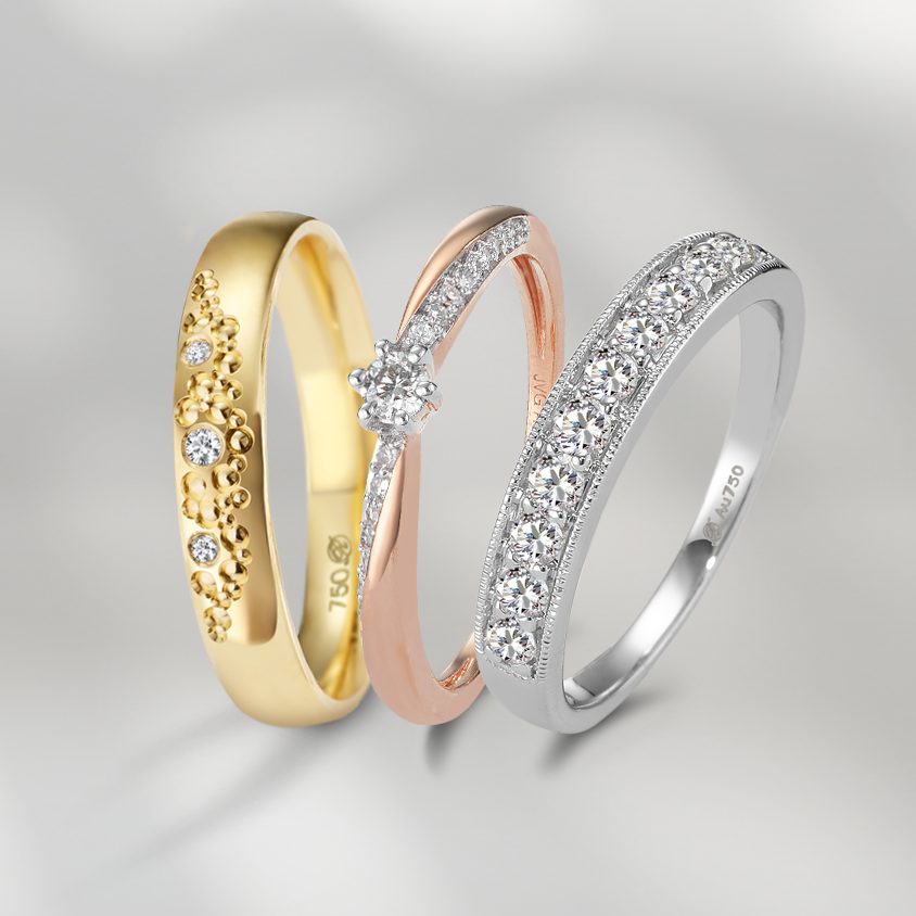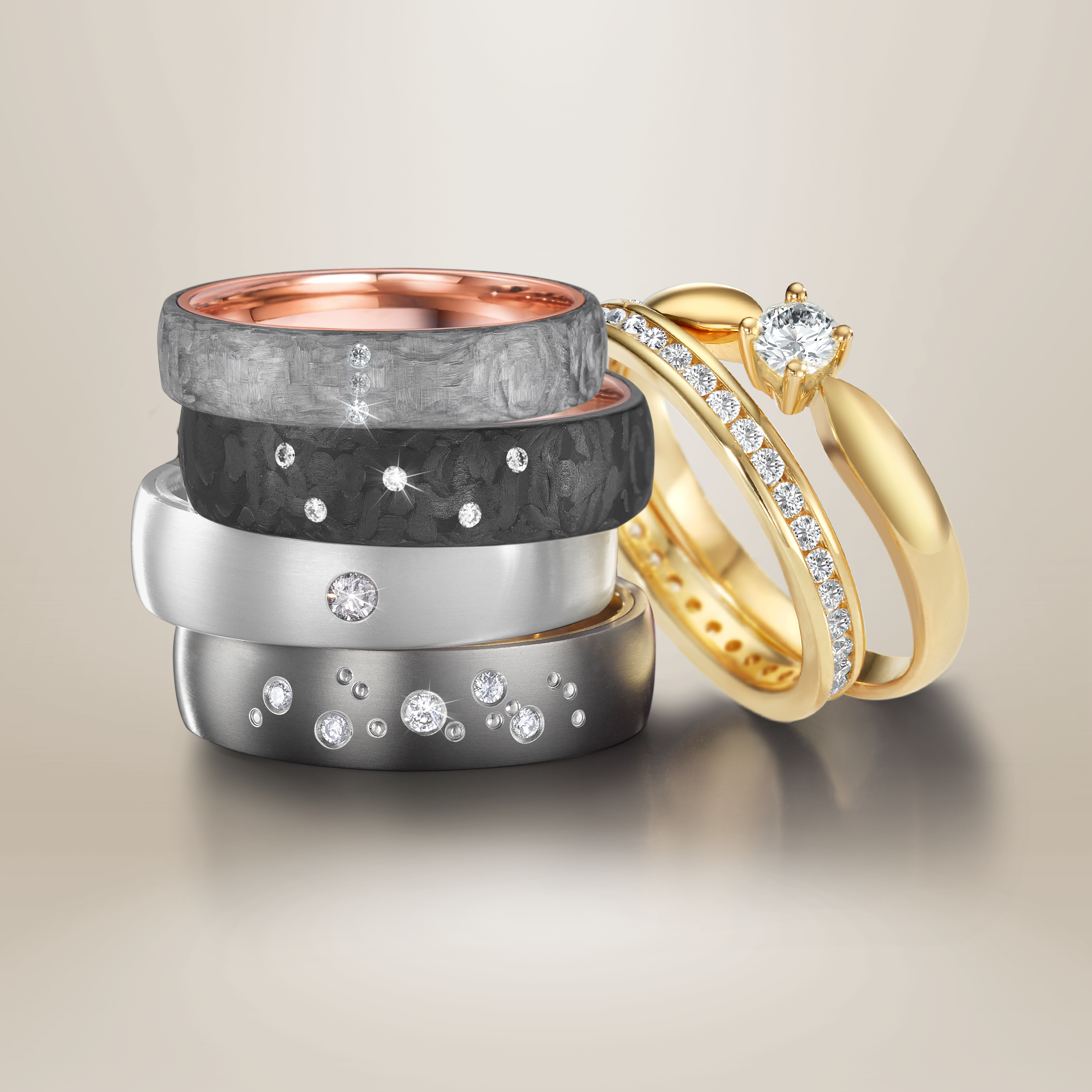 Von dezent bis eindrucksvoll – Diamanten setzen funkelnde Akzente und verleihen euren Ringen besondere Bedeutung. -
