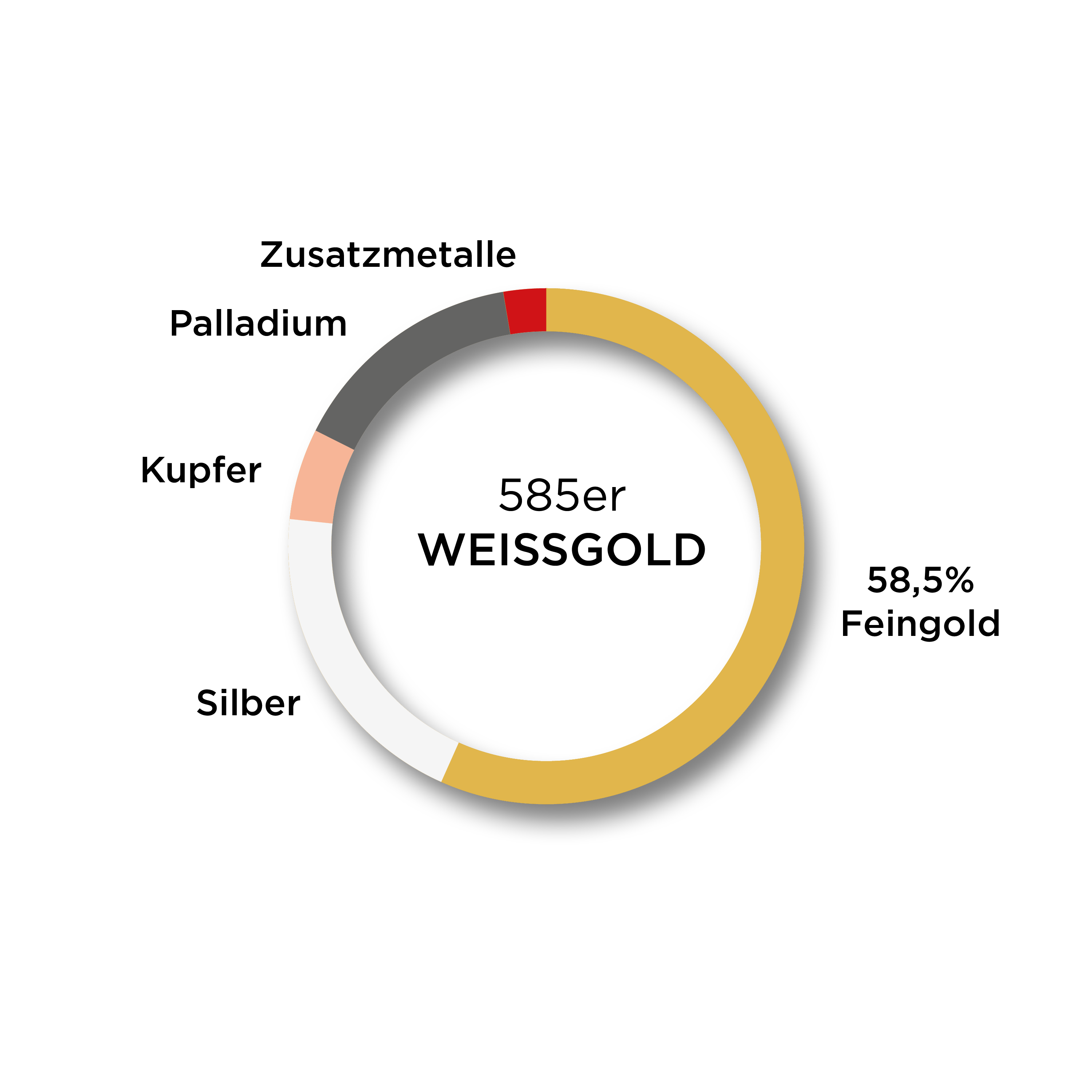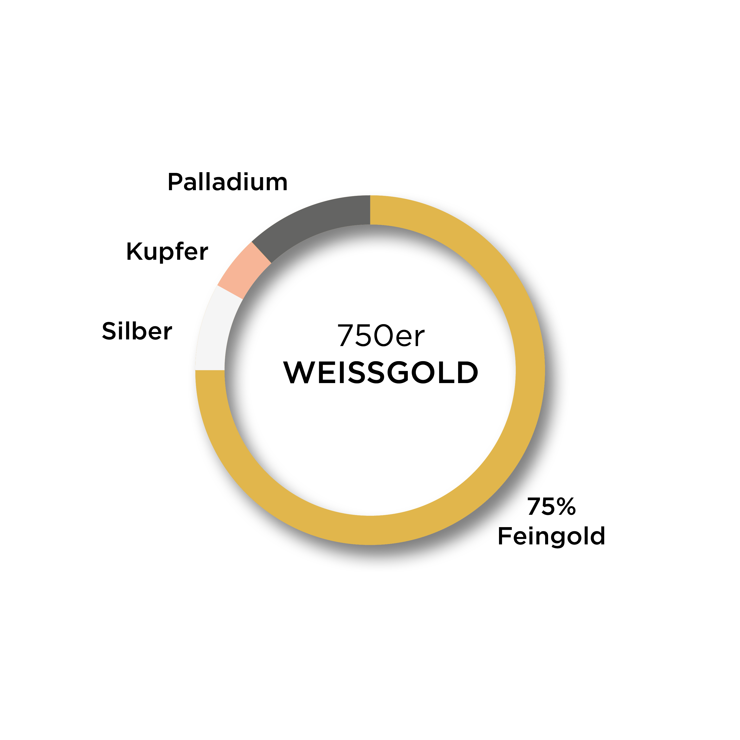 Modern, elegant und zurückhaltend: Weissgold erhält seinen kühlen Glanz durch einen hohen Palladiumanteil – ganz ohne Nickel. Die perfekte Wahl für alle, die Klarheit und schlichte Raffinesse schätzen – auch bei sensibler Haut.