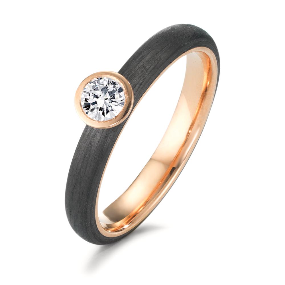 Solitär Ring 750/18 K Rosegold, Carbon Diamant 0.25 ct, w-si Ø5 mm